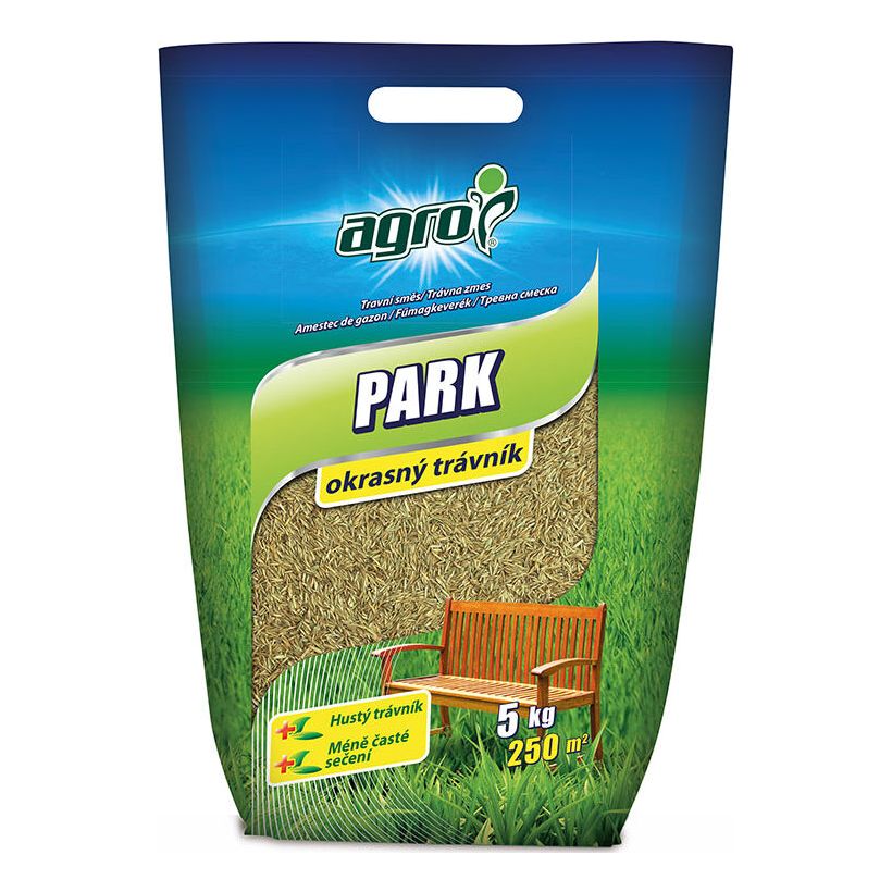 AGRO Travní směs PARK je připravena z kvalitních travních odrůd, které při správné péči vytváří okrasný, hustý a na pohled přitažlivý trávník. Trávník ze směsi PARK je vhodný pro středně a mírně zatěžované reprezentační plochy, pro zahrady rodinných domů, okrasné trávníky v parcích a okolo firemních budov.